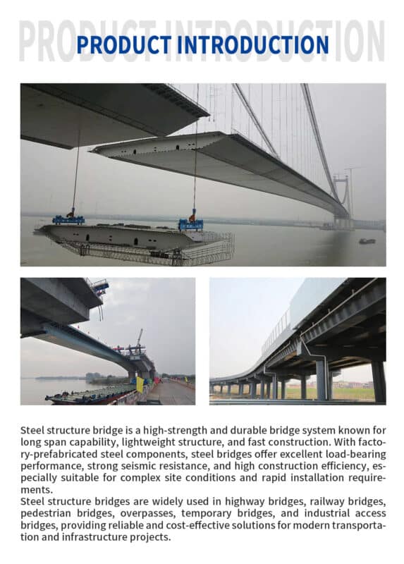 Professional manufacturer of steel structure bridges, providing reliable solutions for highway bridges, railway bridges, pedestrian bridges, overpasses, and infrastructure projects. High strength, fast installation, and long service life.