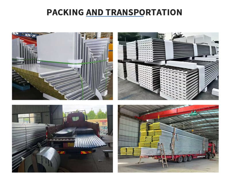 Our insulated steel building wall panels are premium thermal insulation cladding solutions engineered for steel structure factories, warehouses, and workshops. Available in rock wool and PU foam core options, these panels combine high-strength color steel outer layers with low thermal conductivity (0.022–0.038 W/(m·K)) core materials, delivering exceptional heat retention and energy efficiency. Featuring A1-class fire resistance, anti-corrosion coating, and waterproof sealing, all our thermal insulation industrial wall cladding are CE, ISO certified to meet global construction standards. Lightweight design ensures easy installation, while customizable sizes and RAL colors cater to diverse project requirements.